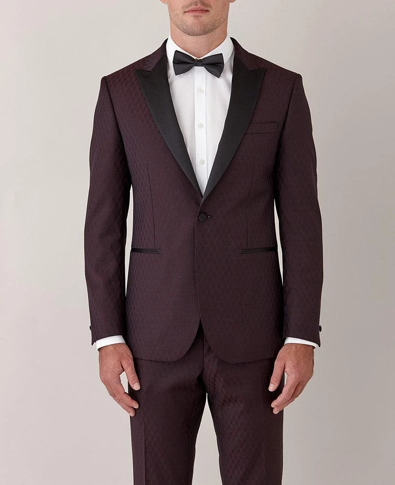 Make a statement with this modern spin on the classic dinner jacket in a wine jacquard. Pair with the matching Caper trousers for a complete black-tie look, or pair with simple black trousers for versatility.Â