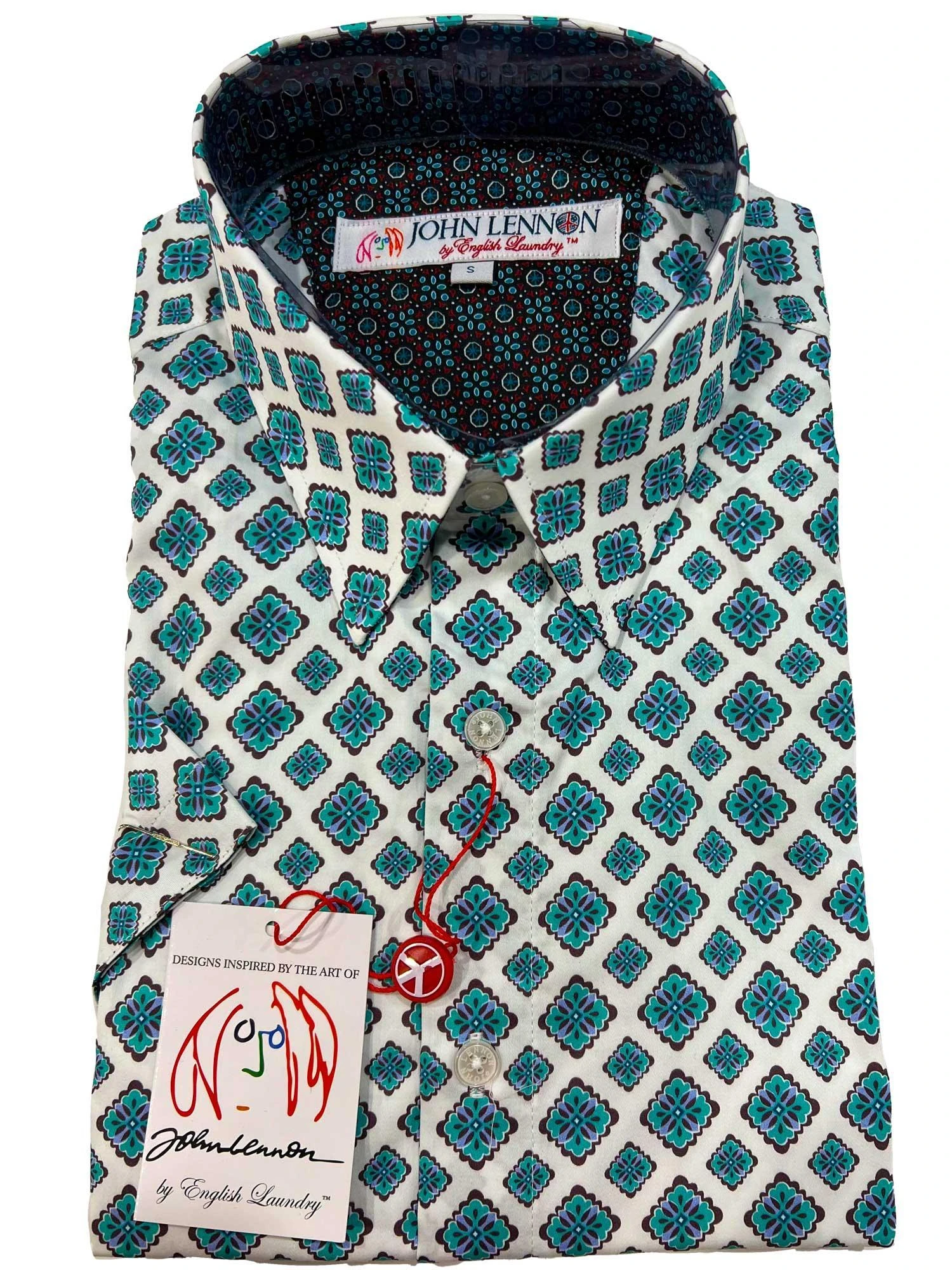 Discover the perfect blend of comfort and style with this Short-sleeved cotton shirt. Inspired by John Lennon’s iconic fashion sense, it boasts classic details that radiate his message of harmony and peace with nature. Embrace your inner artistry with its vintage paisleys, plaids, and prints, and rock his signature embroidered caricature on every shirt. Available at Harry’s for Menswear in Dubbo – a must-have for any Australian retailer!