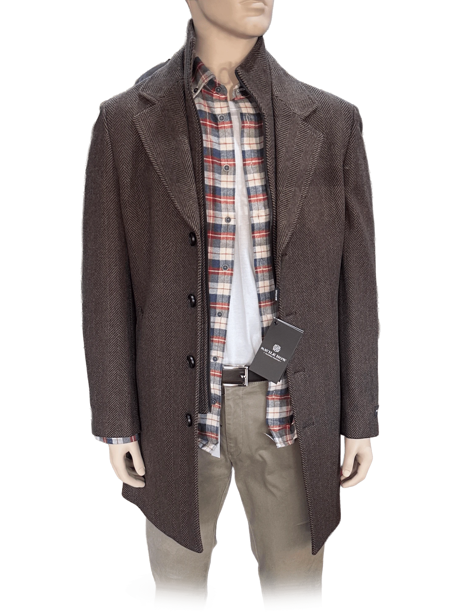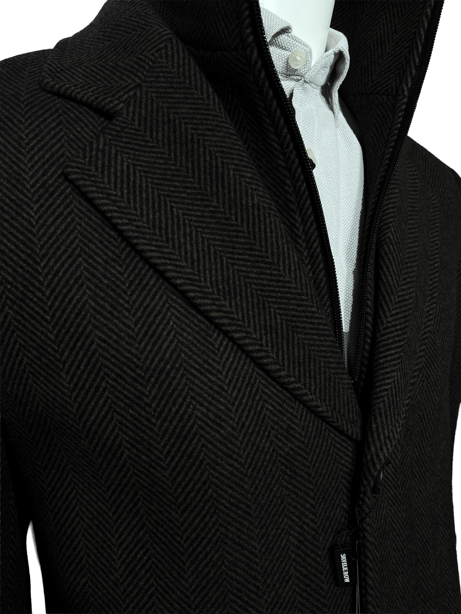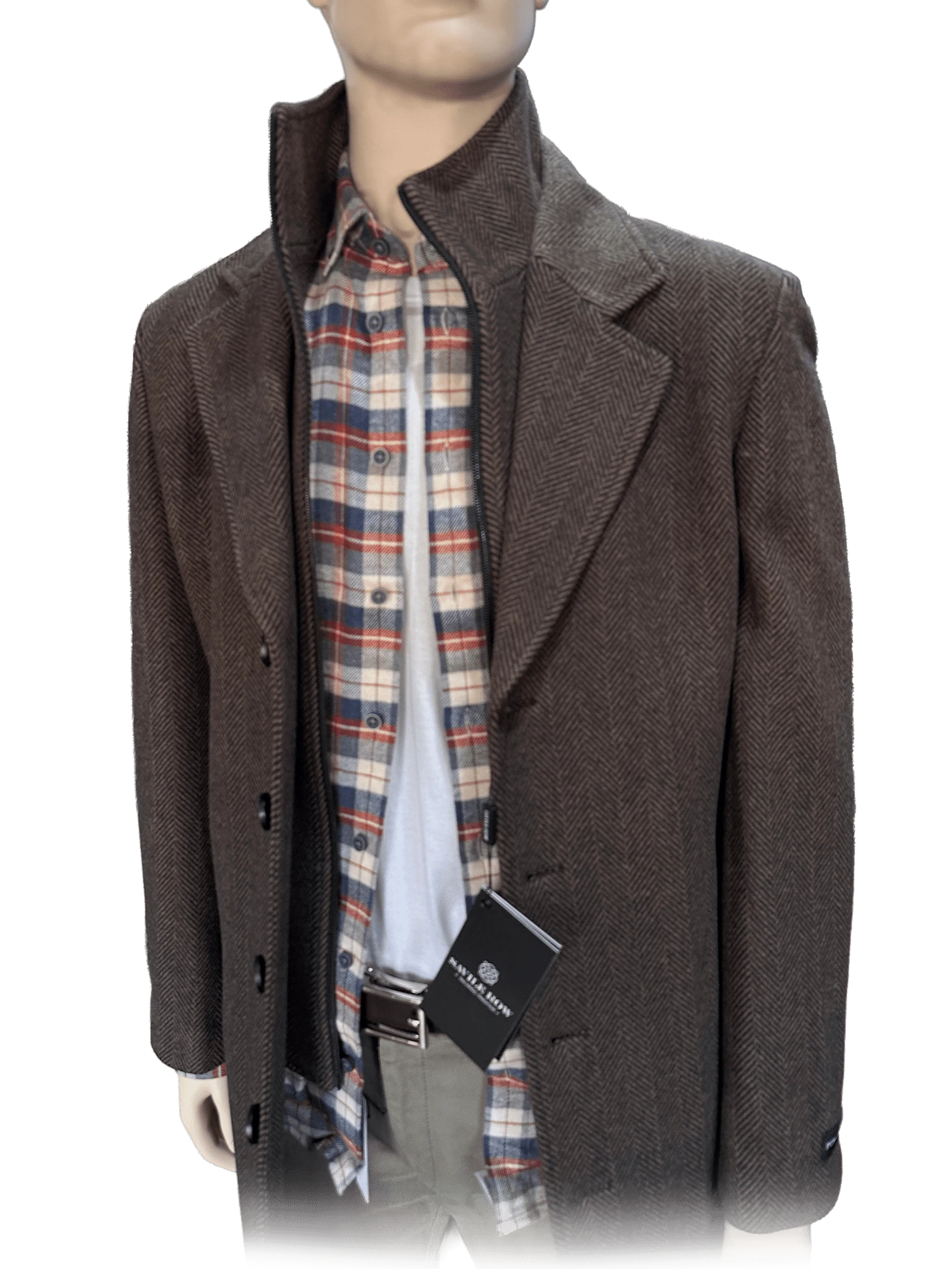 Stay warm and fashionable in the JARED COAT WITH A REMOVABLE COLLAR. Made from luxurious Australian Wool, this classic London-style overcoat showcases a unique herringbone weave. The removable collar adds versatility, making it perfect for any event. Sizes range from Medium to 5XL.